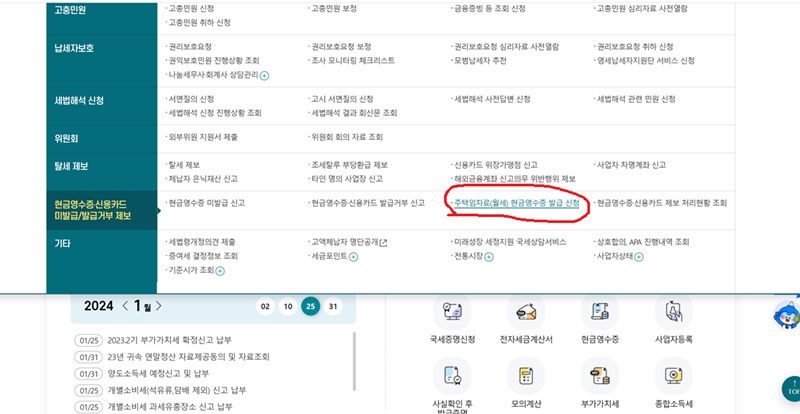- 홈택스 홈페이지에 접속하여 '현금영수증 민원신고' 메뉴에서 '주택임차료(월세)' 관련 신청을 진행합니다.